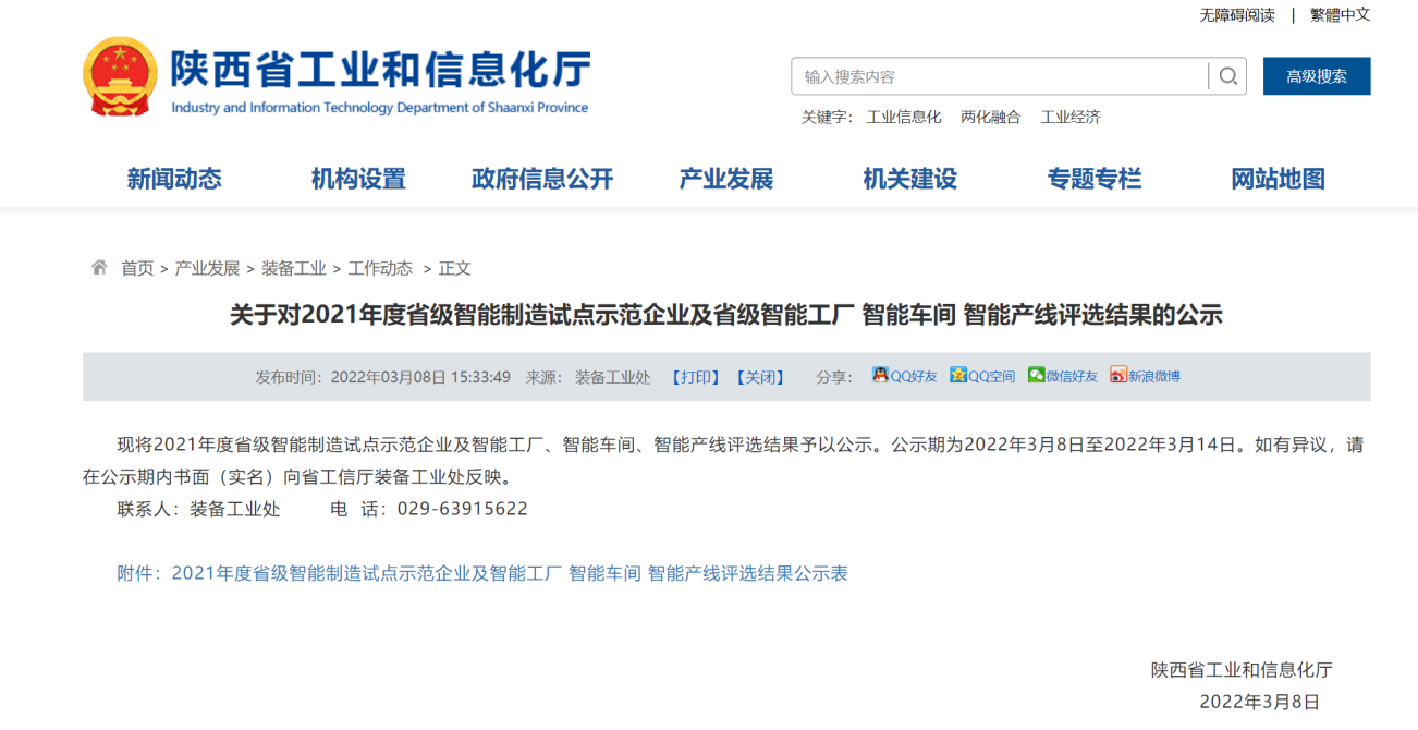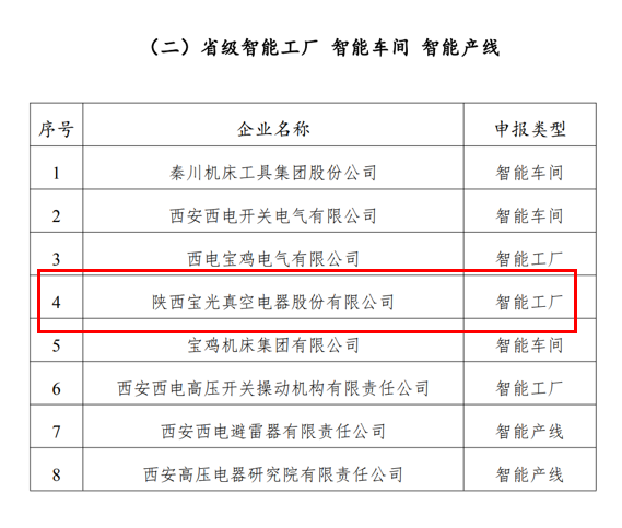 3月14日,陜西省工信廳裝備工業(yè)處發(fā)布2021年度省級智能制造試點(diǎn)示范企業(yè)及省級智能工廠名單,寶光股份獲評“2021年度省級智能工廠”。